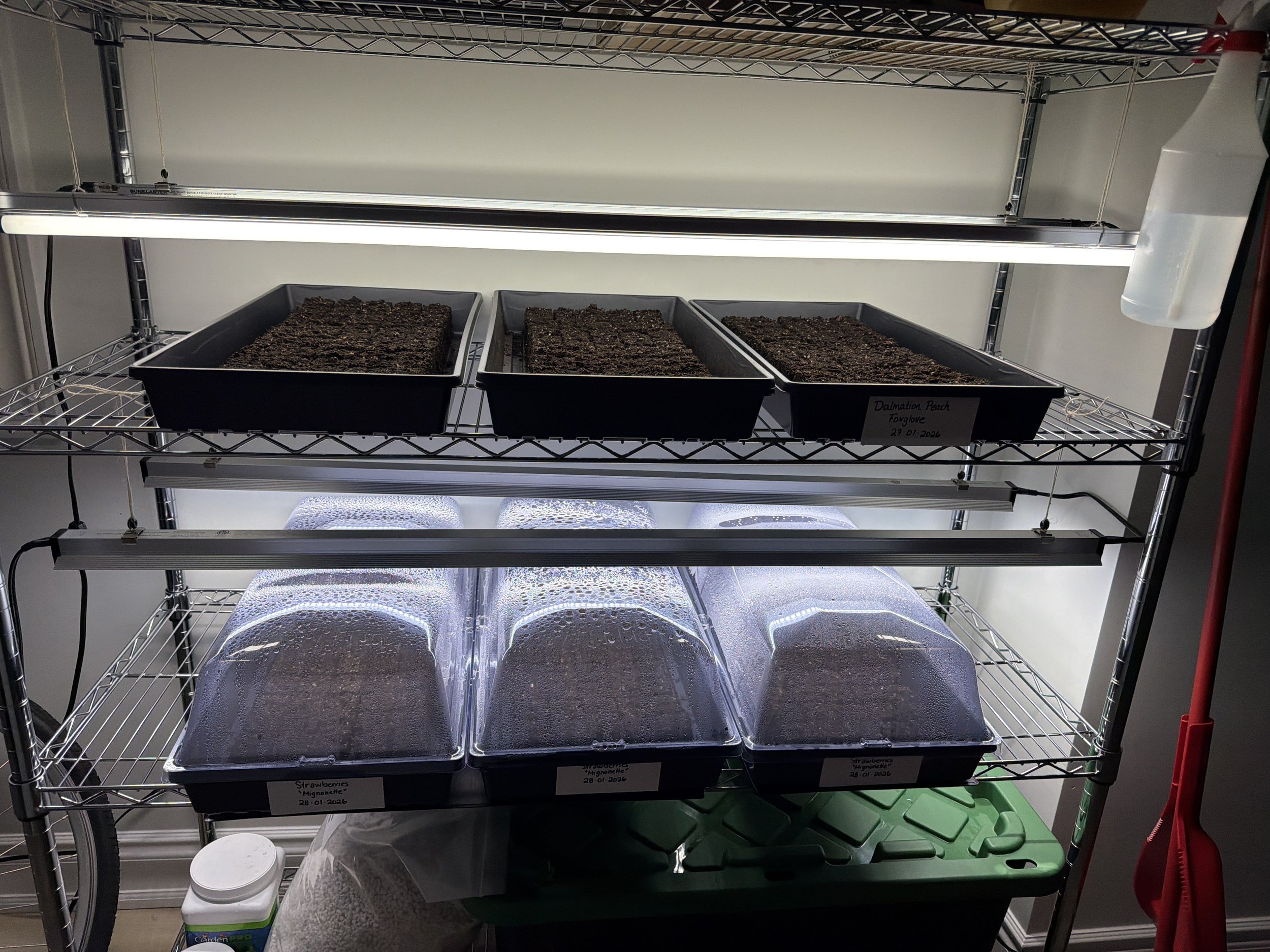 As for seed starting, I will be starting baby blue eucalyptus seeds near the end of February. I’ve heard that these can be a little tricky, so wish me luck! Secondly, I will be soaking ranunculus and anemone corms and placing them in a cool dark place to grow roots. Once sprouted, these will be placed in a greenhouse in March to flower. In January, I started strawberry and foxglove seeds - keep up with my social media pages to see their progress! Here is my seed-starting setup so far.